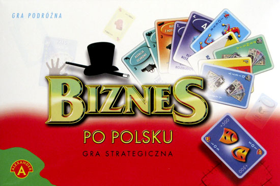 Biznes po polsku - strategiczna gra planszowa / - Chwaszczyno : Z. P. "Alexander", [2010]. - 1 plansza, 30 karty "los", 30 karty "niespodzianka", 23 karty "dowód własności", 5 karty "zawód", 1 karta "poseł", 1 karta "senator", 1 karta "radny rady miasta" 2 karty "legitymacja partyjna", 5 kart "zasiłek", 5 pionków, 5 samochodów, 1 kostka do gry, banktnoty, czeki, 40 szt. elementów 1-krotnego stopnia inwestycji, 15 szt. elementów 5 krotnego stopnia inwestycji, instrukcja gry