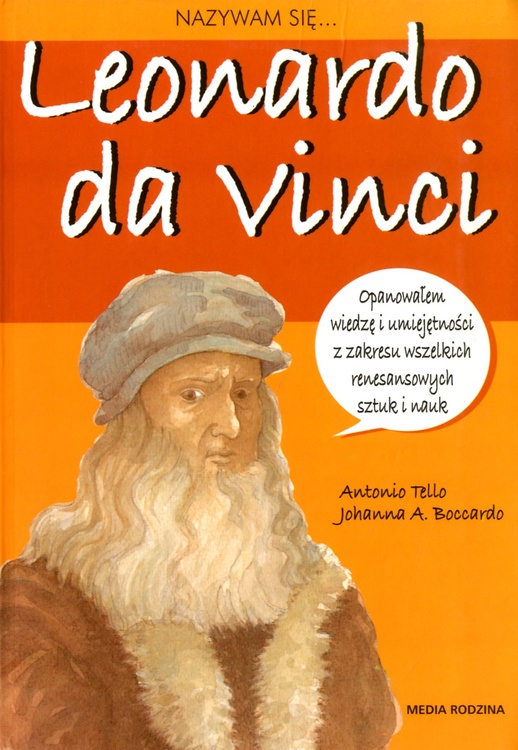 Leonardo, urodzony w Vinci, małym miasteczku w Toskanii, w samym sercu Włoch, był malarzem, rzeźbiarzem, inżynierem, architektem, wynalazcą, a więc wzorem człowieka Renesansu. Malarstwo i rzeźba były dziedzinami, w których szczególnie się wyróżnił. Wprowadził genialne rozwiązania w zakresie techniki światłocienia, perspektywy, ekspresji i precyzji rysunku. Mało kto wie jednak, że genialny Leonardo zajmował się także bardziej przyziemnymi sprawami - był wynalazcą młynka do pieprzu, korkociągu, a nawet ?sznureczków z ciasta?, czyli makaronu! Z zamiłowania był także kucharzem i cukiernikiem i potrafił wymyślać wspaniałe potrawy. Lektura książki Nazywam się Leonardo... uczyni jego postać nie tylko interesującą, ale i przystępną.
