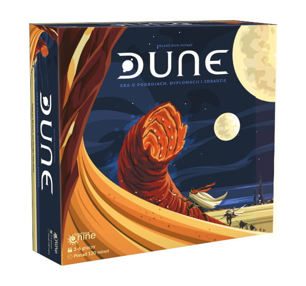 Kultowa Diuna w wersji planszowej?! To chyba spełnienie snów każdego planszówkowicza! Niech świat wykreowany przez Franka Herberta stanie przed Wami otworem. Wsiąknijcie w to wspaniałe uniwersum i skupcie się na poszukiwaniach tajemniczej substancji - melanżu. Kto zdobędzie kontrolę nad planetą? Wyobraź sobie, że wcielasz się w przywódcę jednej z grup, które władają piaszczystą planetą Arrakis, jedynym źródłem mirażu - "przyprawy", która jest najdroższą substancją wszechświata. Wyobraź sobie, że możesz od nowa napisać losy bohaterów najsłynniejszej książki science-fiction wszech czasów. Zapraszamy do nowej edycji kulotowej gry sprzed 40 lat, która pozwala wejść w pustynny, klimatyczny świat Diuny Franka Herberta! W grze Dune staniesz na czele jednej z 6 frakcji, z której każda marzy, aby kontrolować przynoszącą najwięcej dochodów i prestiżu substancję w galaktyce - melanż, tajemniczą "przyprawę" możliwą do znalezienia na planecie Arrakis (nazywanej potocznie Diuną). Tylko jakim kosztem? Komu uda się przejąć władzę na Arrakis? Wciel się w jedną z fascynujących postaci i posiądź jej niezwykłe moce w drodze do zwycięstwa!