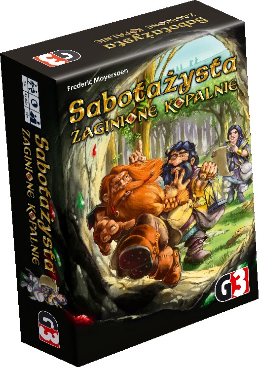 Sabotażysta : zaginione kopalnie [Gra planszowa] / Frederic Moyersoen ; ilustracje Alexander Jung. - G3 - 1 pudełko: (91 kart, 32 znaczniki punktów zwycięstwa, 14 znaczników lasu, 1 znacznik smoka, 10 znaczników krasnoludów, 10 krasnoludów (z podstawkami), plansza, instrukcja)