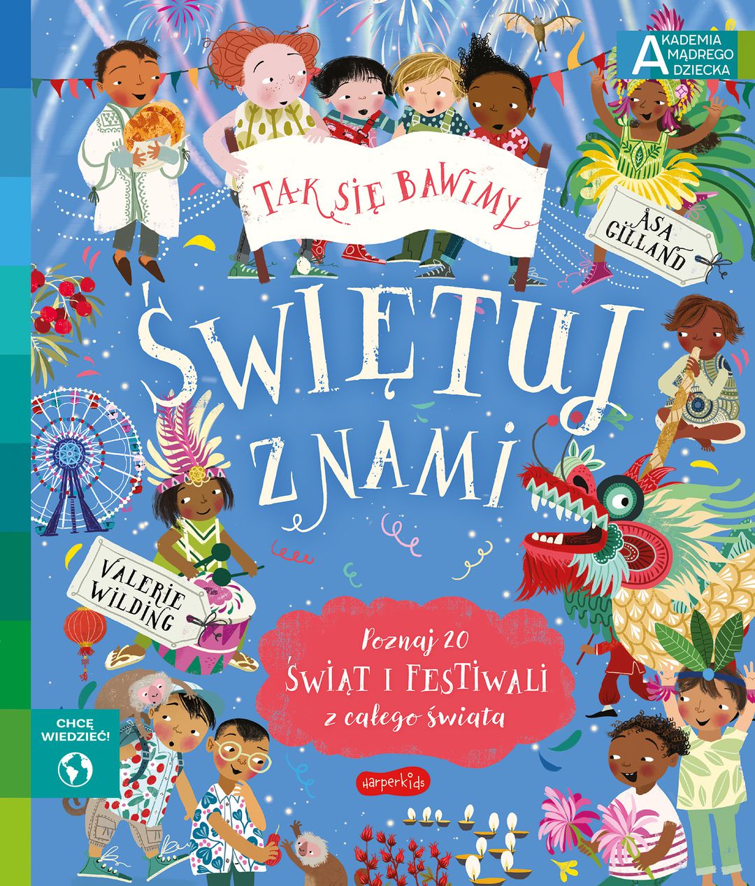 Z tej bogato ilustrowanej książki dowiesz się, jak bawią się dzieci na wszystkich kontynentach i jak świętują ważne wydarzenia. Wybierz się na małpią ucztę do Tajlandii, porównaj, jak świętuje się karnawał w Rio de Janeiro, a jak w Wenecji, sprawdź, co jada się w Grecji na Wielkanoc, a co w Meksyku na Święto Zmarłych. Przekonaj się, że święta bywają różne, lecz wszędzie to czas dobrej zabawy.