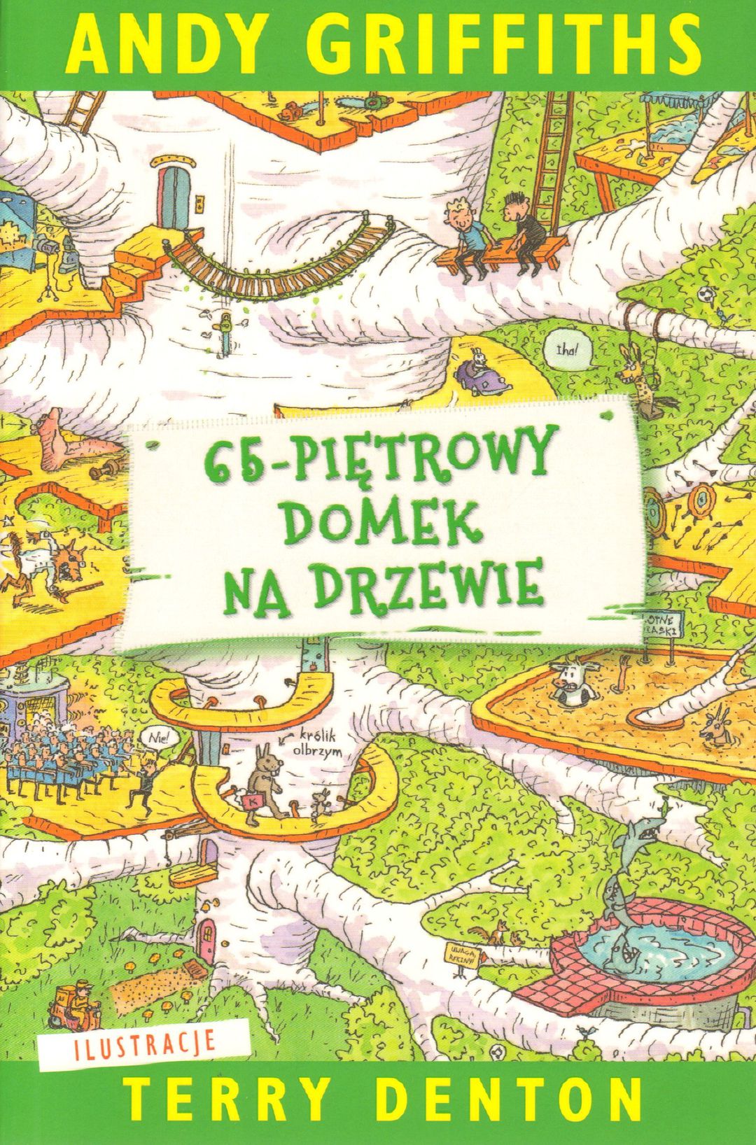 Andy i Terry mieszkają w sześćdziesięciopięciopiętrowym domku na drzewie (mieli pięćdziesięciodwupiętrowy, ale się rozbudowali). A ten domek jest najfajniejszy na świecie! Znajdziecie tu między innymi: salon piękności dla zwierząt, pokój, w którym zawsze są twoje urodziny (nawet jeśli akurat ich nie ma), eksplodujące gałki oczne i mrówczą farmę. Terry Denton urodził się w Melbourne jako jeden z pięciu braci. Zaczął studiować architekturę, ale zorientował się, że go to unieszczęśliwia, więc rzucił uniwersytet i zajął się innymi sprawami. Próbował prawie wszystkiego - parał się teatrem, malarstwem, rzeźbą, zaklinaniem koni, budowaniem gór lodowych i doradzaniem pterodaktylom, aż odkrył, że chce ilustrować książki dla dzieci. Dziś ma ich na koncie ponad czterdzieści, z których wiele stworzył wraz z Andym Griffithsem. Zrealizowano ze środków finansowych Ministra Kultury i Dziedzictwa Narodowego w ramach Narodowego Programu Rozwoju Czytelnictwa. Priorytet 1 – Zakup nowości wydawniczych dla bibliotek publicznych.